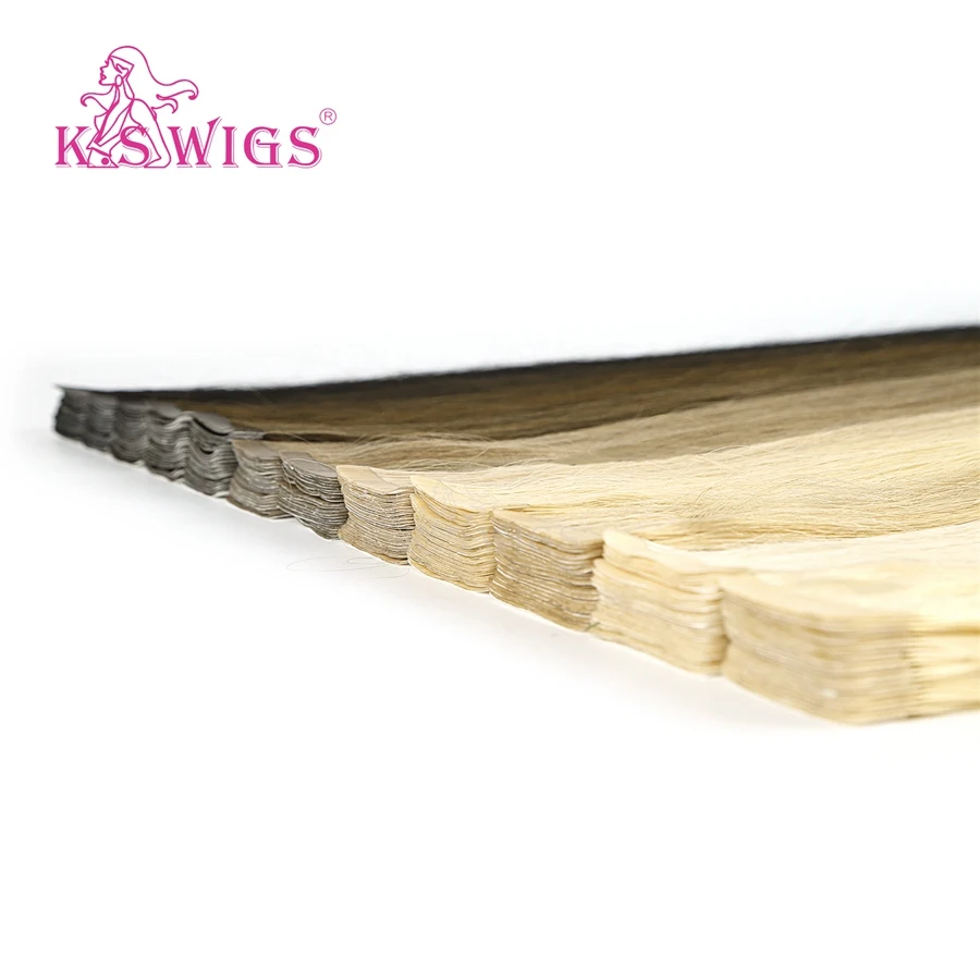 K.S WIGS 100pcs/pack PU Skin Weft Hair Double Drawn Hand Tied Tape In Human Extensions 16'' 20'' 24''
