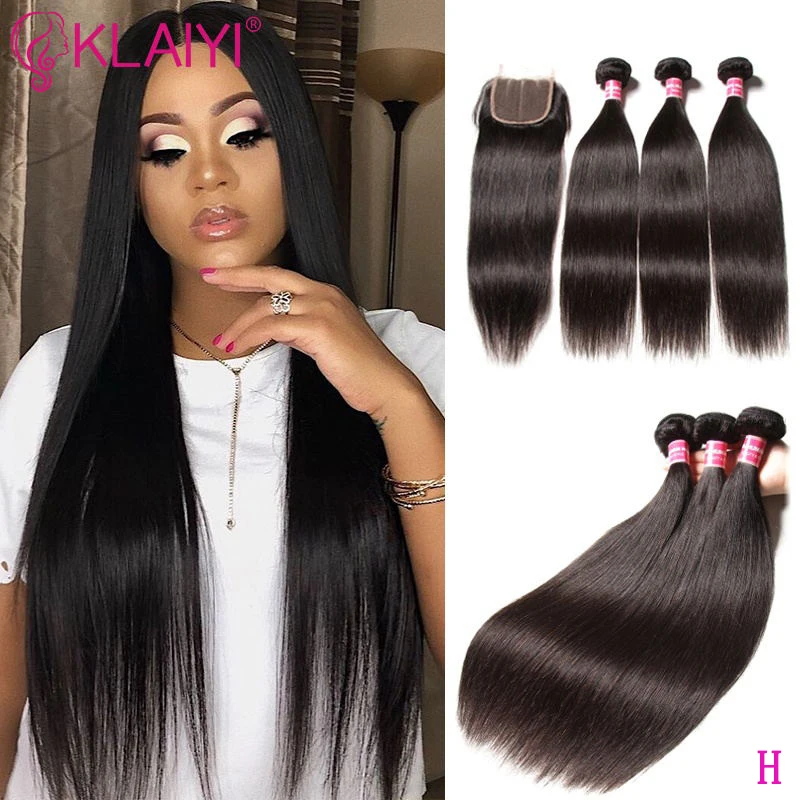 Related Product for KLAIYI HAIR Malaysian Straight Hair Bundles With Closure 100% Human Hair Extension 3 Bundles With C
