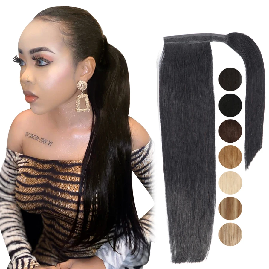 Special Price for MRS HAIR Ponytail Hair Extensions 14" 18" 22" Machine Made Remy Wrap Around Tail Human Hair Full He