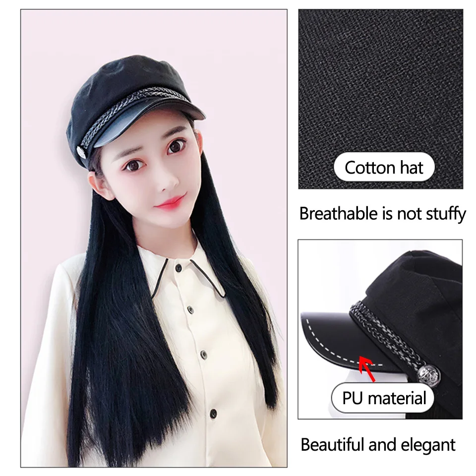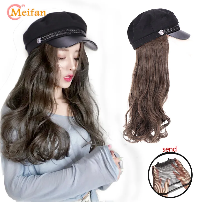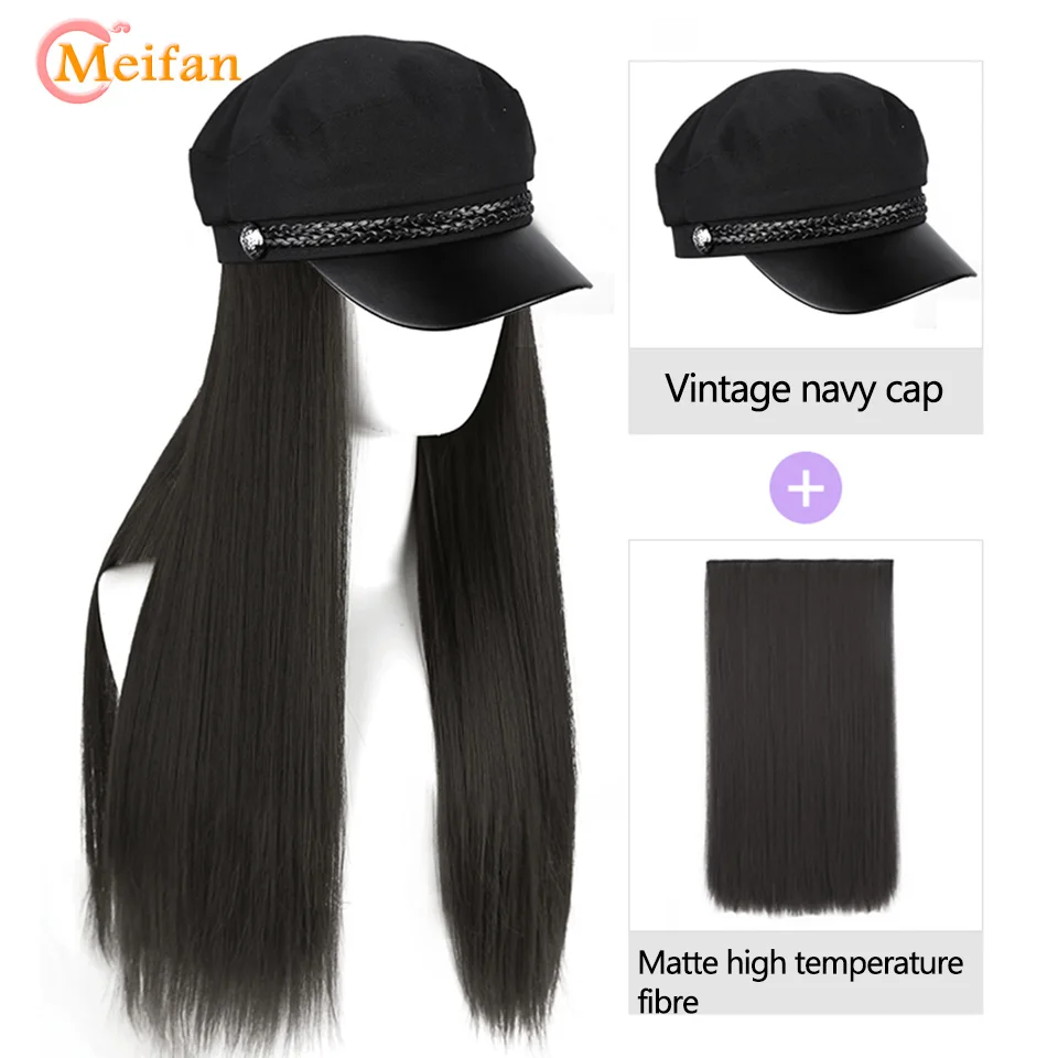 Best Price for MEIFAN Synthetic Hair Wig with England Style Flat Military Vintage Beret Cap Long Straight/Wavy hai