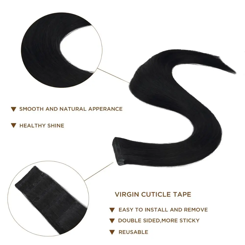 Neitsi Double Drawn Love Line Tape In Remy Human Hair Extensions Invisible Skin Weft Hair Straight 16" 20" 24" Black Blonde